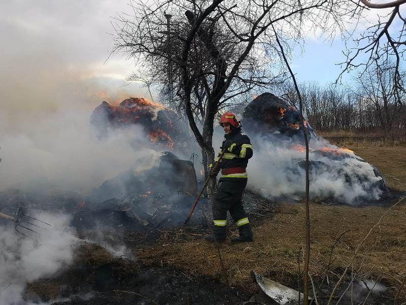 Un incendiu violent a izbucnit astăzi, într-o gospodărie din localitatea Arborea. Cinci stive de furaje și un adăpost de animale au fost cuprinse de flăcări. Alarma a fost dată chiar de proprietar, puțin înainte de ora 11.00, speriat că incendiul se poate extinde la casă.