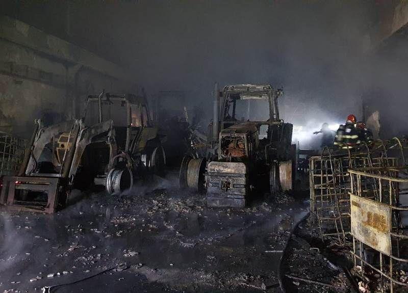 Incendiul a fost observat și anunțat cu întârziere. S-au salvat mai multe utilaje agricole. Cauza probabilă a incendiului este în curs de stabilire.
