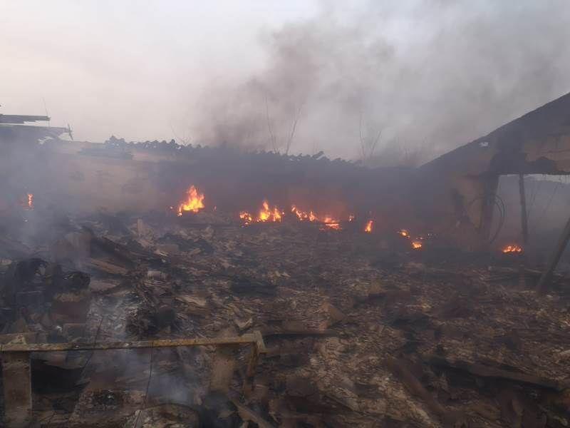 Au ars: adăpostul de animale, 250 tone furaje, cinci tone de cereale ( porumb, grâu, soia), utilaje agricole, cositoare, anvelope camion, prelate remorcă tir, utilaj pentru tăiat lemne, 300 litri ulei de motor, vegetația uscată de pe 50 ha și două hectare de plantație de salcâmi. În incendiu au pierit 24 animale (șase porci, 14 oi, patru capre). În gospodăria afectată locuiau două familii.