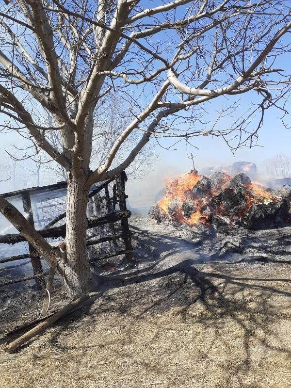 50 de baloți de paie ardeau violent, iar flăcările amenințau casa, adăposturile de animale și un alt depozit de furaje. Din primele informații, un vecin a dat foc unor resturi vegetale adunate din gospodărie, iar o scânteie purtată de vânt a ajuns pe furaje.