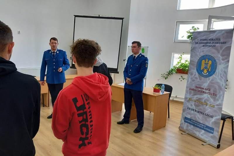 În după-amiaza zilei de miercuri, 6 aprilie 2022, jandarmii din cadrul Grupei de Supraveghere și Intervenție Săveni s-au întâlnit cu elevi Grupului Școlar „Dr. Mihai Ciucă”, în cadrul unor activități preventiv-educative.
