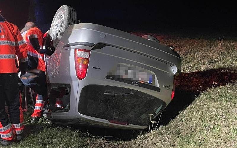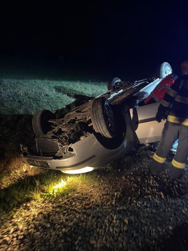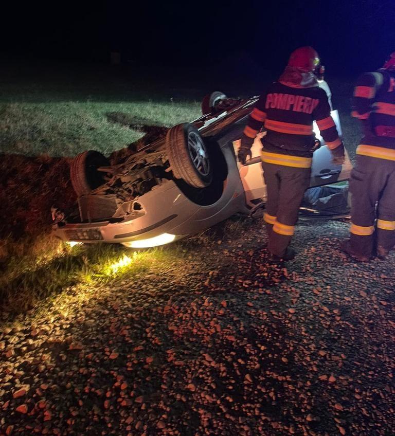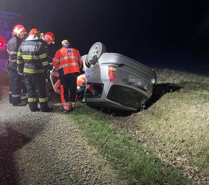 În această noapte, două persoane, soț și soție, au fost rănite în urma unui accident rutier, după ce autoturismul în care se aflau s-a răsturnat.