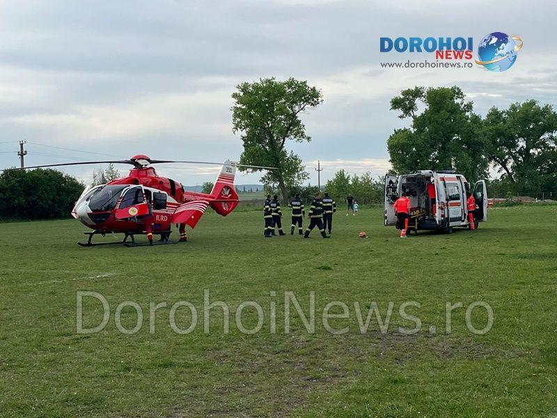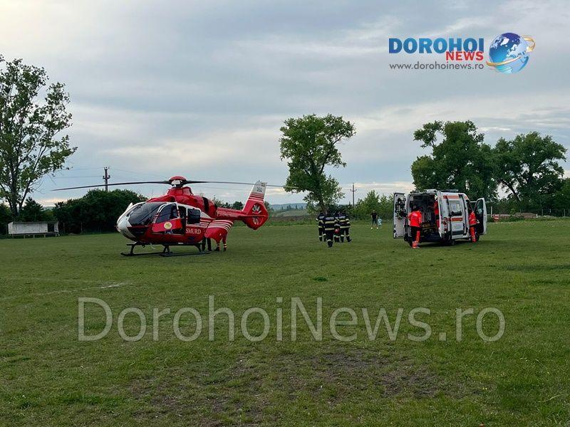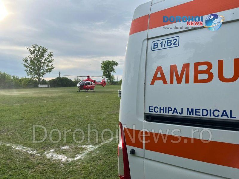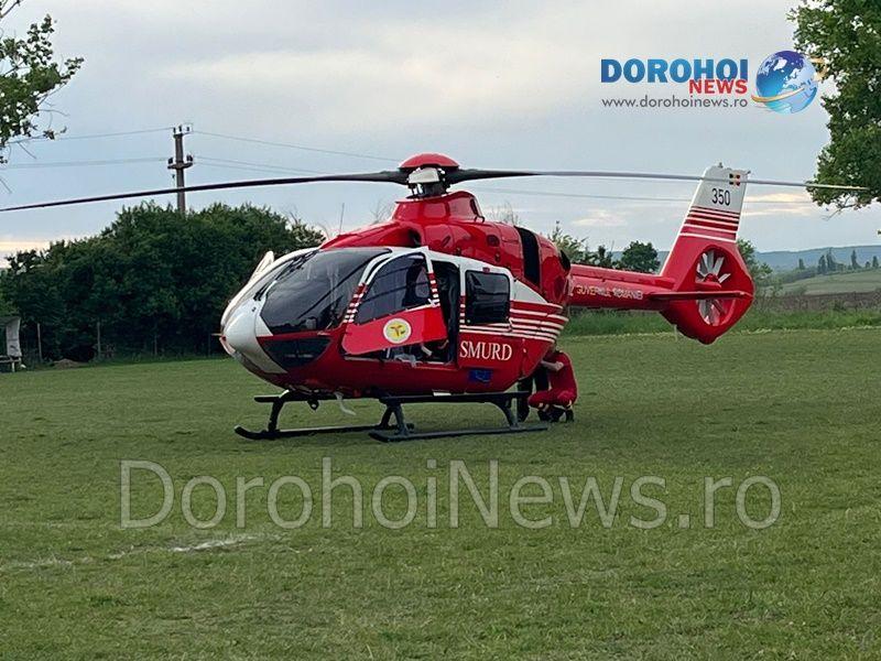 Elicopter SMURD solicitat vineri, 20 mai 2022, la Dorohoi, pentru a transporta o femeie în vârstă de 69 de ani care a suferit un infarct.