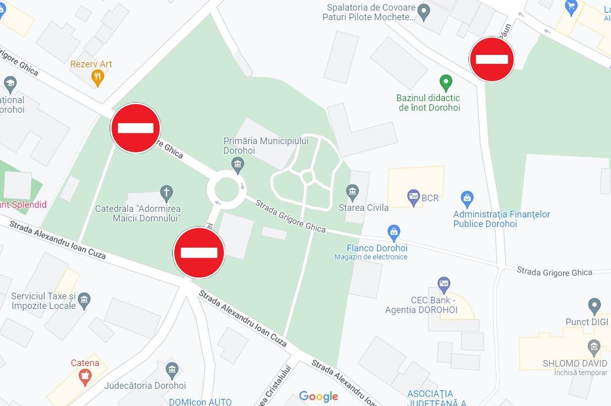 Pentru buna desfășurare a evenimentului va fi restricționată circulația în zona din fața Primăriei Dorohoi (de la intersecția străzilor A.I. Cuza cu Poștei până la intersecția străzilor Grigore Ghica cu Vasile Alecsandri).