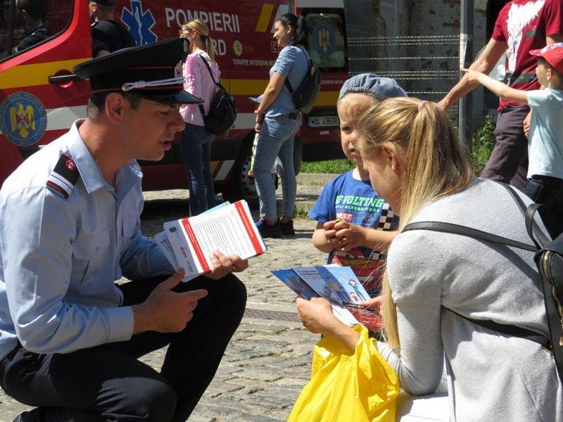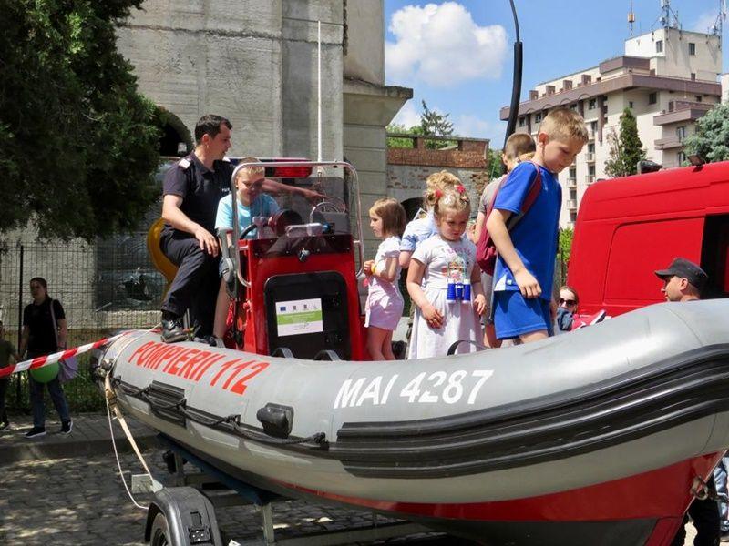 Cei mici au asistat cu interes la exerciții demonstrative de stingere a incendiilor, de descarcerare, de salvare de la înălțime, de acordare a primului ajutor calificat, precum și la prezentarea tehnicii de intervenție din dotarea inspectoratului.