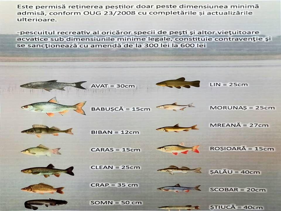 - reținerea peștilor sub dimensiunile minime legale se sancționează cu amendă de la 300 la 600 de lei;