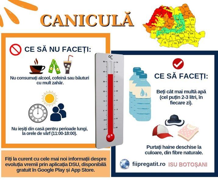 Pentru a trece cu bine de această perioadă caniculară, ISU Botoșani recomandă respectarea următoarelor măsuri:
