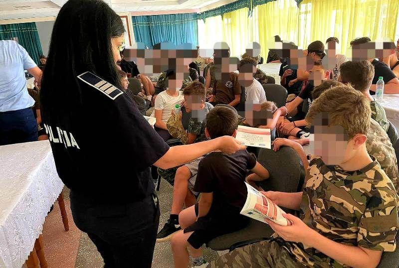 Pentru că e perioada vacanței, când taberele și-au deschis porțile, polițiștii Compartimentului de Analiză și Prevenire a Criminalității și cei de la Centrul de Prevenire, Evaluare și și Consiliere Antidrog au considerat oportun să fie prezenți la tabăra de airsoft pentru a discuta cu copiii.