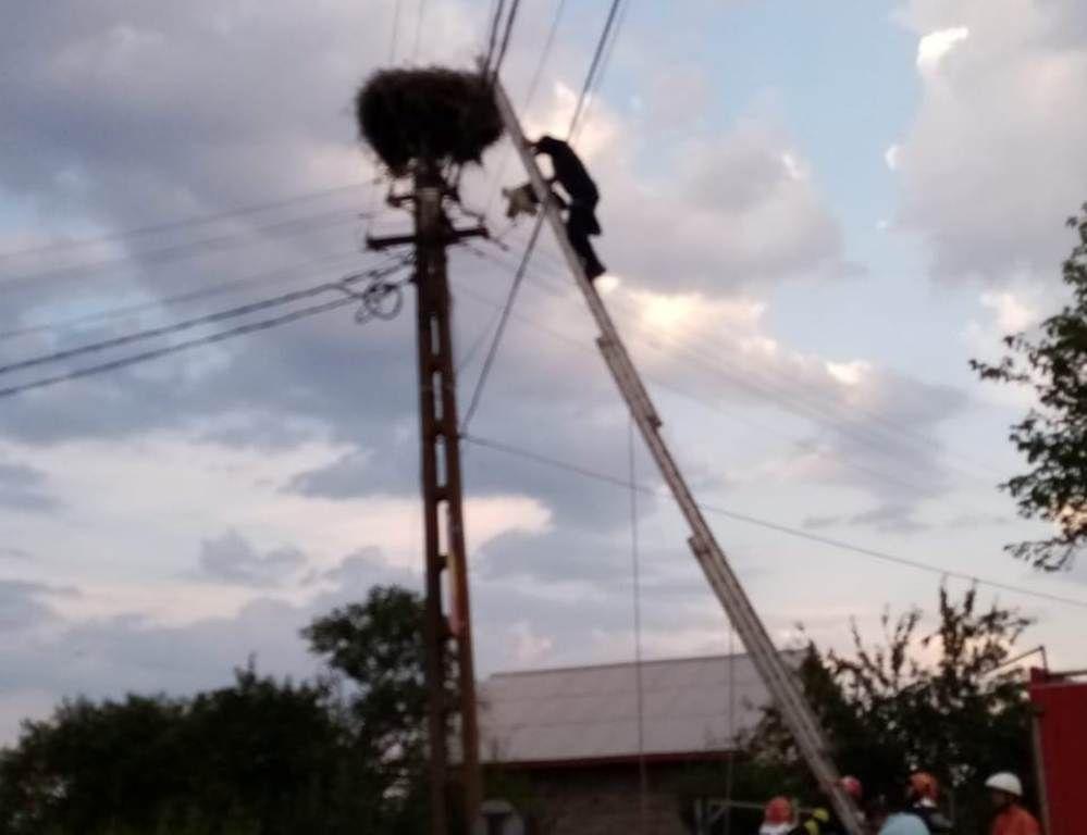 Ajunși în cel mai scurt timp în localitatea Bârsănești, comuna Durnești, pompierii au reușit să îi coboare de pe stâlp, folosind o scară. În brațele salvatorilor, puii de barză s-au simțit în siguranță.