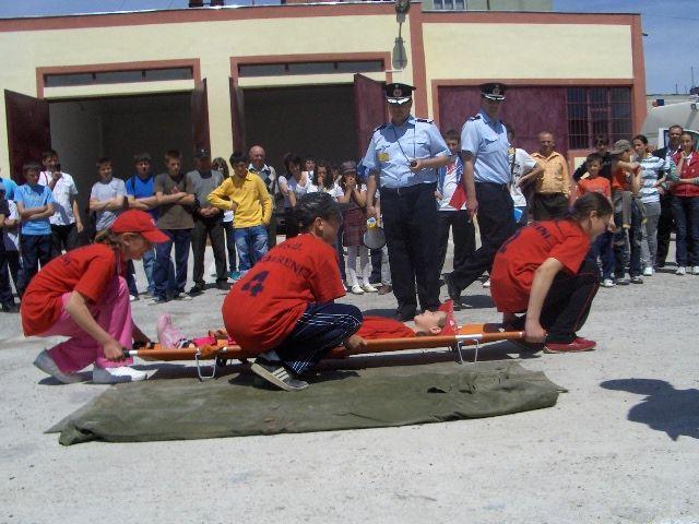 La proba teoretică elevii au avut de rezolvat un chestionar cu 30 de întrebări din domeniul protecţiei civile. Proba practică a constat în transportarea, contracronometru, a unui accidentat pe targă şi parcurgerea unei curse cu obstacole, având masca de protecţie contra fumului şi gazelor pe faţă.