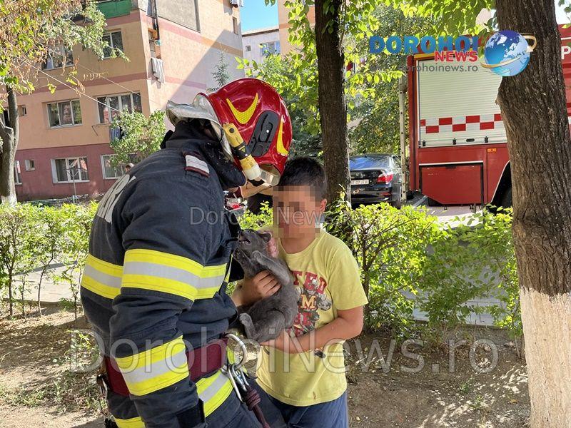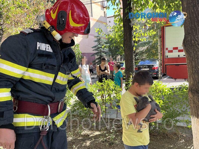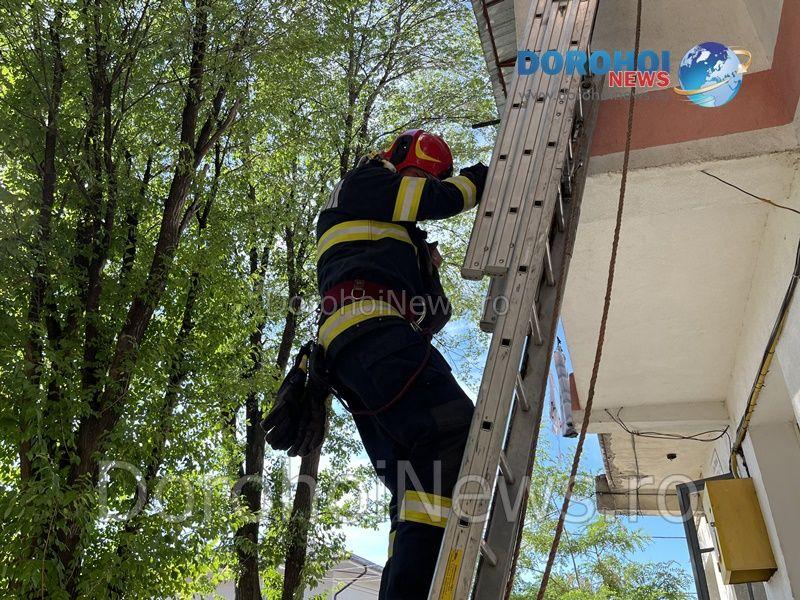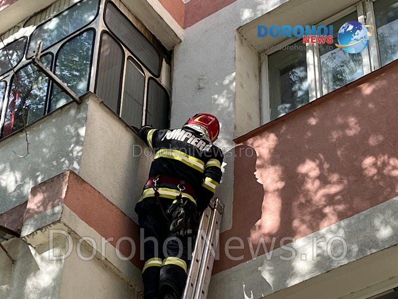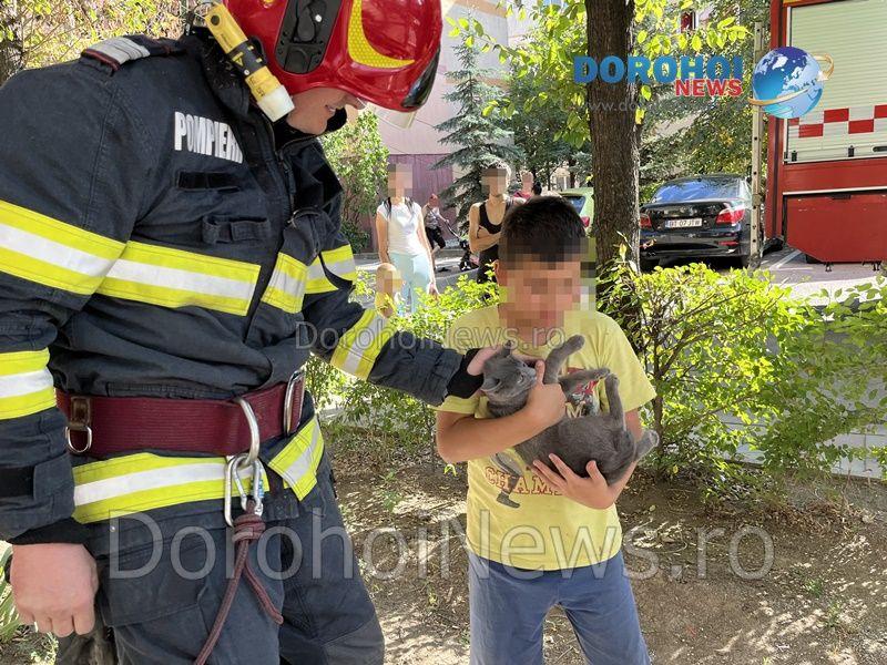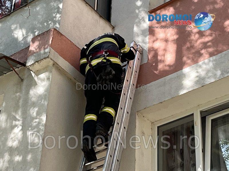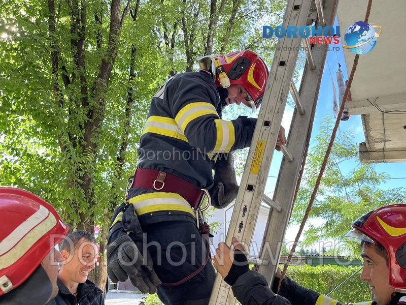 La locul indicat s-a deplasat o autospecială cu apă și spumă din cadrul Detașamentului de Pompieri Dorohoi. La sosirea pompierilor, pisica era pe exteriorul balconului de la primul etaj al unui bloc, dezorientată și speriată. Aceștia au folosit echipamentele din dotare și au urcat până la ea, reușind să o prindă și să o coboare în siguranță. (Andrei B.)