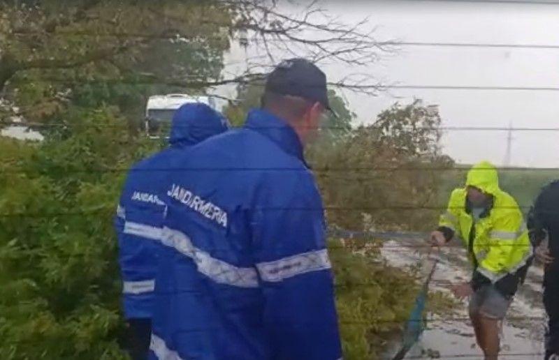 Jandarmii au fost ajutați de șoferul unui camion, care a adus o chingă, și au reușit împreună, în câteva minute, să degajeze partea carosabilă pentru reluarea traficului rutier în zonă.