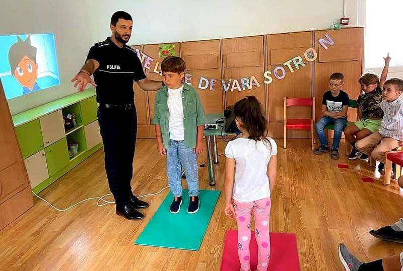 Poliţiştii Compartimentului de Analiză și Prevenire a Criminalității Botoşani, miercuri 17 august, au fost alături de copiii din cadrul Grădiniţei cu Program Prelungit nr. 22 Botoșani, în mijlocul cărora au derulat activităţi de informare pe 2 teme: prevenirea victimizării minorilor prin infracţiuni informatice, precum şi respectarea regulilor de circulaţie rutieră.