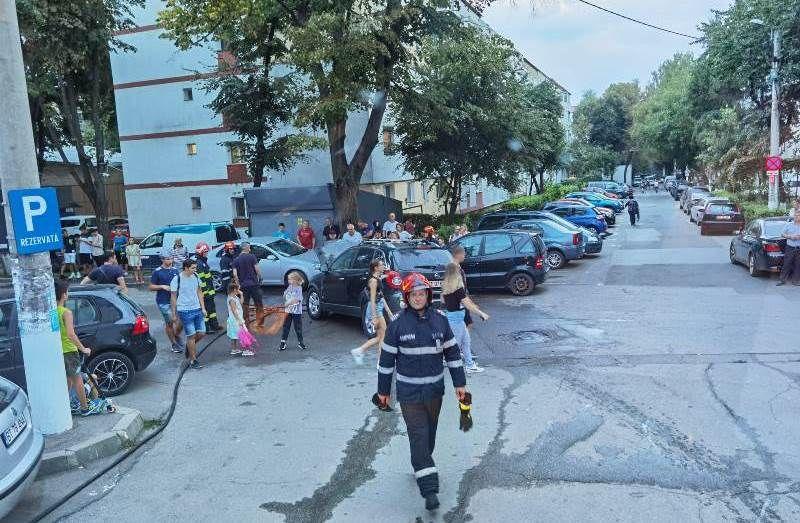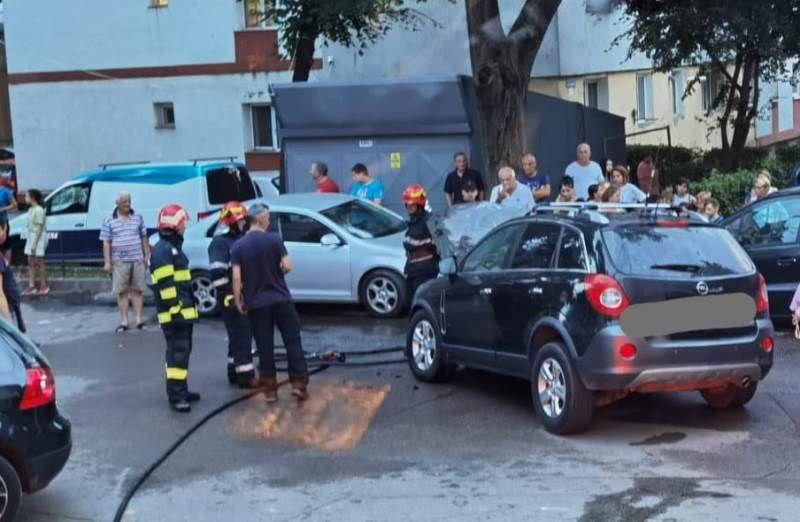 Ajunși la fața locului cu o autospecială de stingere cu apă și spumă, pompierii au constatat că ardea partea din față a mașinii, existând pericolul de propagare a flăcărilor și la alte autoturisme parcate în zonă.