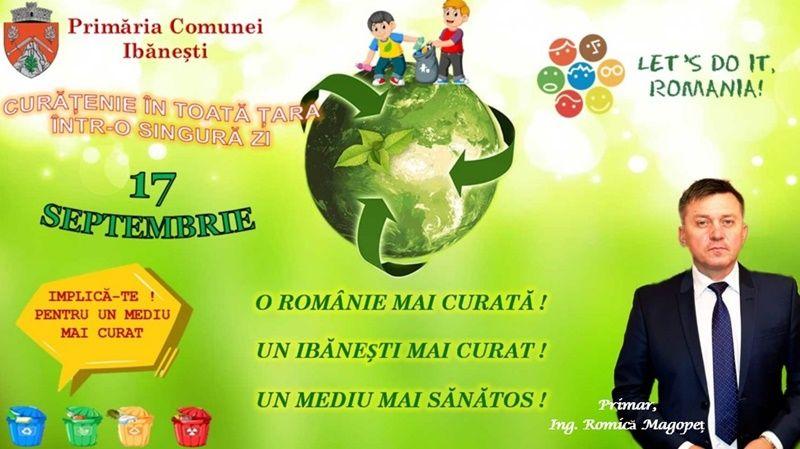 Primăria comunei Ibănești împreună cu școlile și ceilalți voluntari ce s-au înscris la sediul primăriei au luat parte astăzi la cel mai mare proiect de implicare socială „Let s do it, România”, ce și-a propus curățarea țării de deșeuri într-o singură zi.
