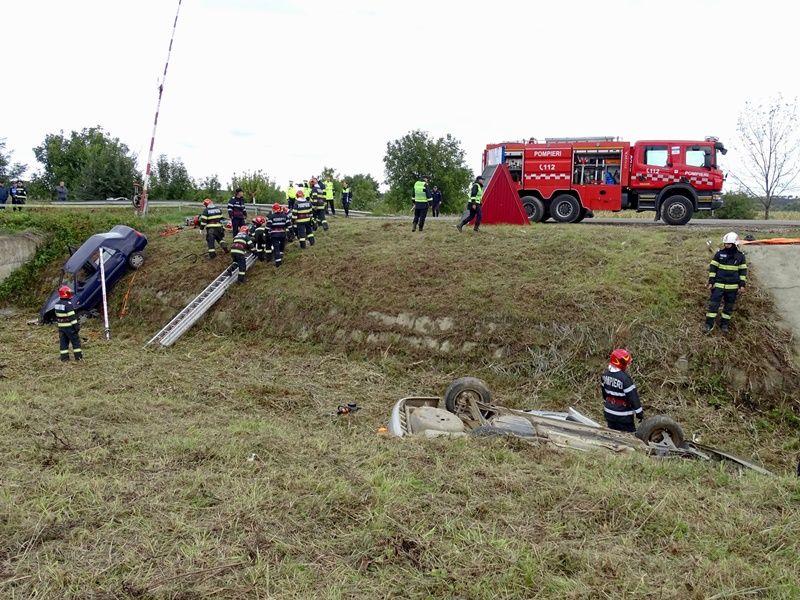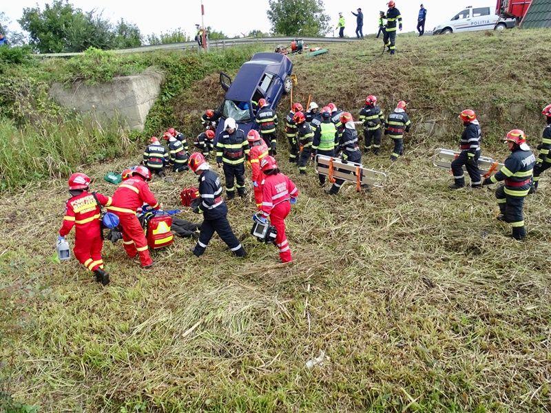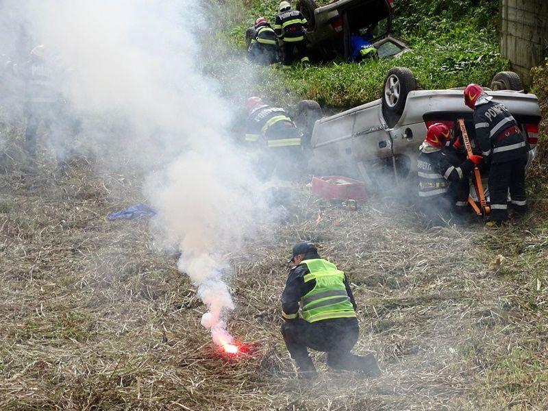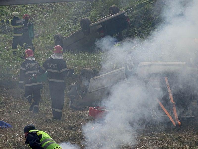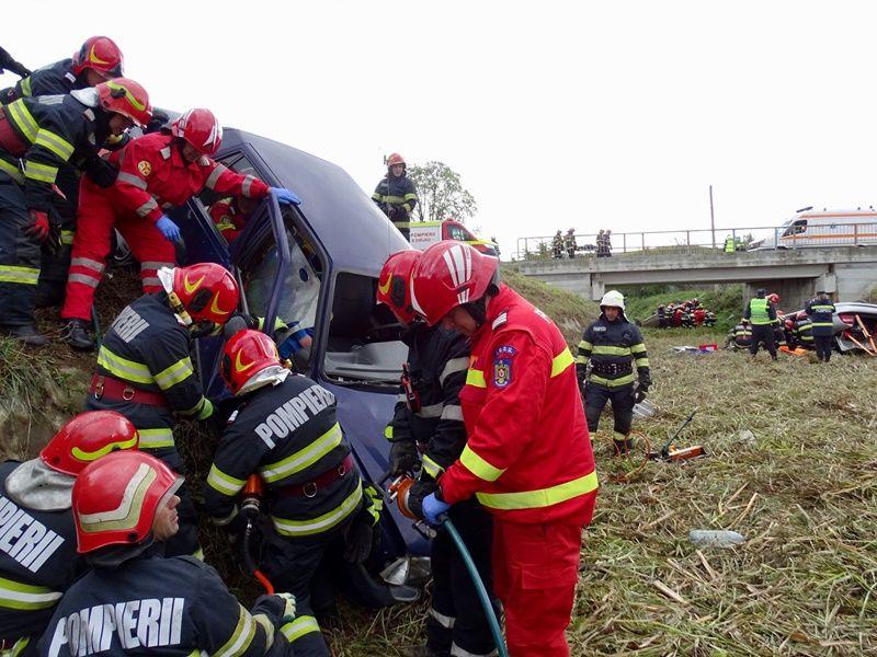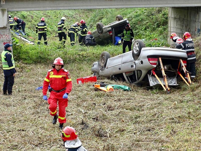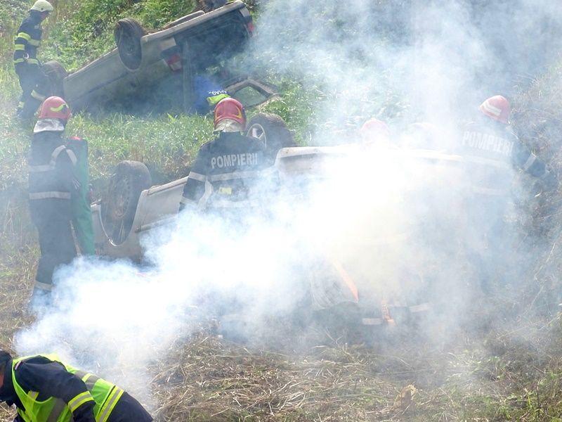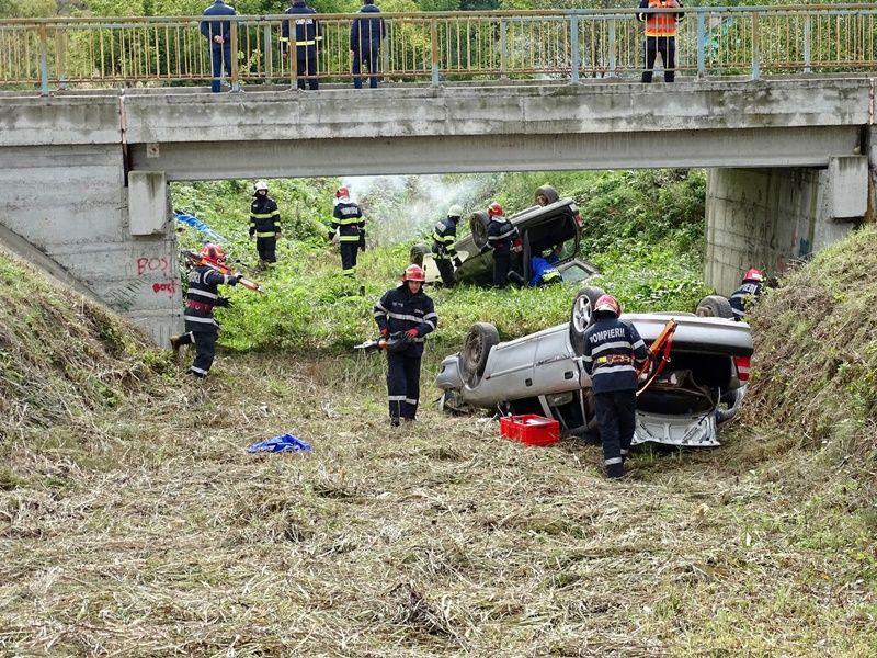 În toate autovehiculele există persoane încarcerate sau cu afecțiuni care le pun viața în pericol. La scurt timp după impact, unul dintre autoturisme a fost cuprins de flăcări. Acesta a fost scenariul unui exercițiu cu forțe și mijloace în teren, ce a avut loc marți, 20 septembrie 2022.