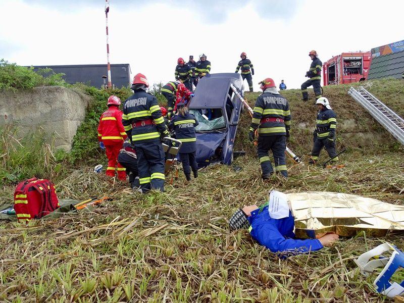 Pentru gestionarea situațiilor de urgență, a fost activat Planul Roșu de Intervenție. Pe timpul exercițiului, pompierii au intervenit pentru stingerea incendiului, extragerea persoanelor din autoturisme și acordarea primului ajutor medical răniților. La fel ca în situațiile reale, echipajele SMURD și ale Serviciului Județean de Ambulanță au acționat pentru salvarea persoanelor, trierea și acordarea primului ajutor în Postul Medical Avansat și transportarea acestora la spital.