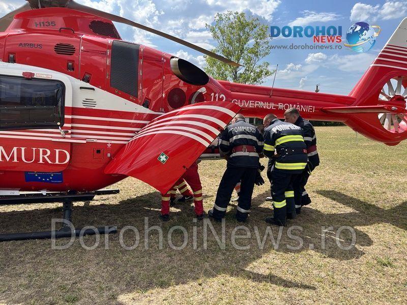 În cursul zilei de marți, femeia, care acuza dureri în piept, a solicitat o ambulanță care a transportat-o la Spitalul Municipal Dorohoi. Aici, medicii au diagnosticat-o cu infarct miocardic acut și au solicitat elicopterul SMURD care să o transfere la o clinică de specialitate din Iași.
