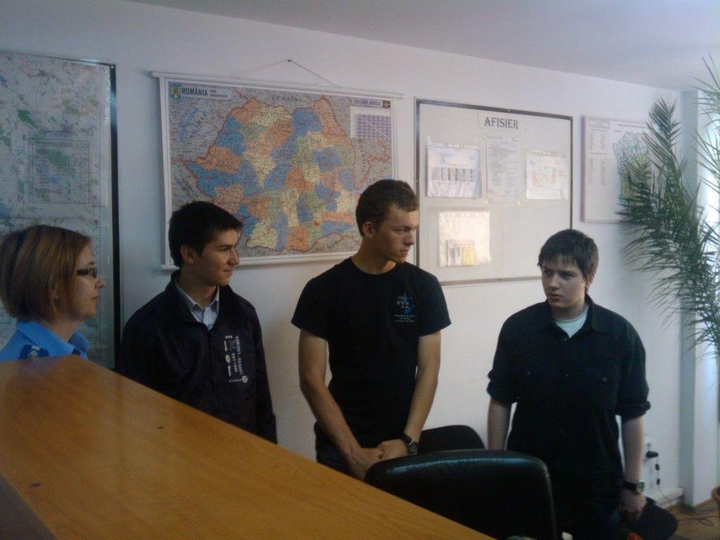 Câştigătorii, Caziuc Sabina de Colegiul Naţional Mihai Eminescu, Bulboacă Gheorghe de la Seminarul Teologic şi Stratulat Bogdan, elev la Grupul Şcolar de Industrie Uşoară Botoşani, au putut vizita astăzi sediul inspectoratului (dispeceratul, sala tradiţiilor, sediul Detaşamentului Mobil), precum şi o parte din armamentul şi materialele folosite de jandarmii botoşăneni în executarea misiunilor specifice.