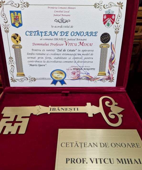 În cadrul evenimentului cultural organizat de către primăria comunei Ibănești împreună cu școala ”Ștefan Cel Mare” din satul Ibănești, eveniment realizat cu prilejul „Zilei Internaționale a Educației”, s-a desfășurat decernarea titlului de CETĂȚEAN DE ONOARE domnului profesor Vitcu Mihai.