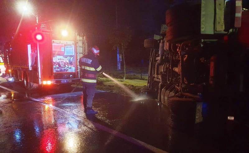 Șoferul tirului care s-a răsturnat a primit îngrijiri medicale la locul evenimentului, dar a refuzat transportul la spital. Pompierii au asigurat măsurile PSI. Circulația a fost reluată după aproximativ o oră.