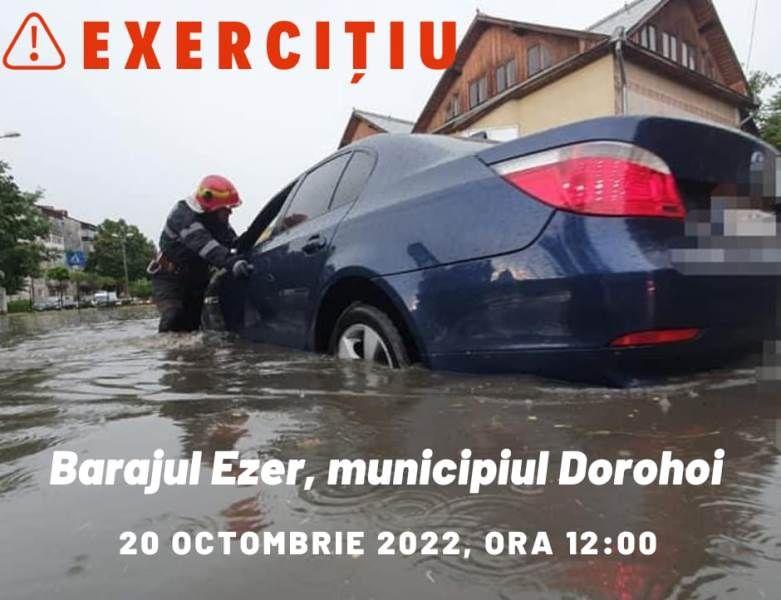 Inspectoratul pentru Situații de Urgență „Nicolae Iorga” al Județului Botoșani va organiza joi, 20 octombrie 2022, un exercițiu cu forțe și mijloace în teren. Acesta se va desfășura în zona acumulării Ezer, începând cu ora 12.00.