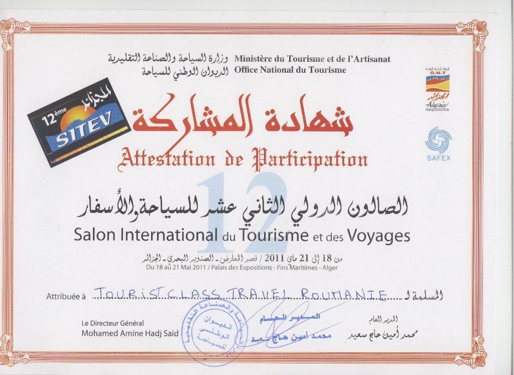 Prof. Silvia Nechita, reprezentant al Societatii Turist Class Dorohoi, a primit invitatie la acest important eveniment international din partea Ministerului Turismului din Algeria.