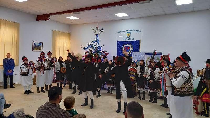 Până la sosirea lui Moș Crăciun, copiii și părinții au urmărit un program de datini și obiceiuri tradiționale prezentat de ansamblul „Codrulețul” din Vorona, coordonat de domnul profesor Sergiu Dascălu. Copiii au fost încântați de colindele ascultate, de jocul caprelor, al urșilor, mascaților și căiuților, spectacolul incheindu-se cu o „sorcovă” autentică și o horă românească, spre încântarea celor prezenți.