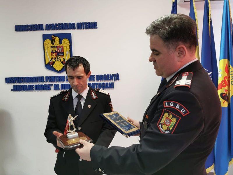 Cu prilejul Zilei Protecției Civile din România, patru pompieri botoşăneni, care au obţinut rezultate foarte bune în îndeplinirea atribuţiilor de serviciu, au fost înaintaţi în gradul următor, înaintea expirării stagiului minim.