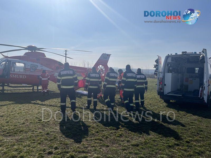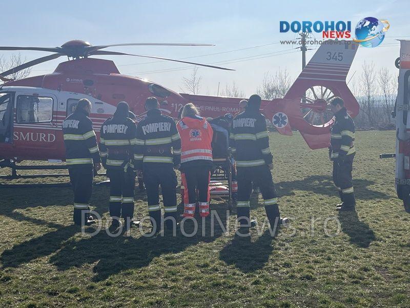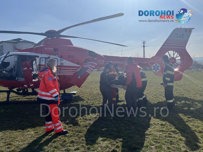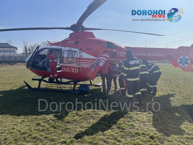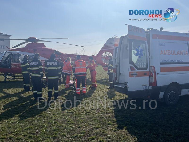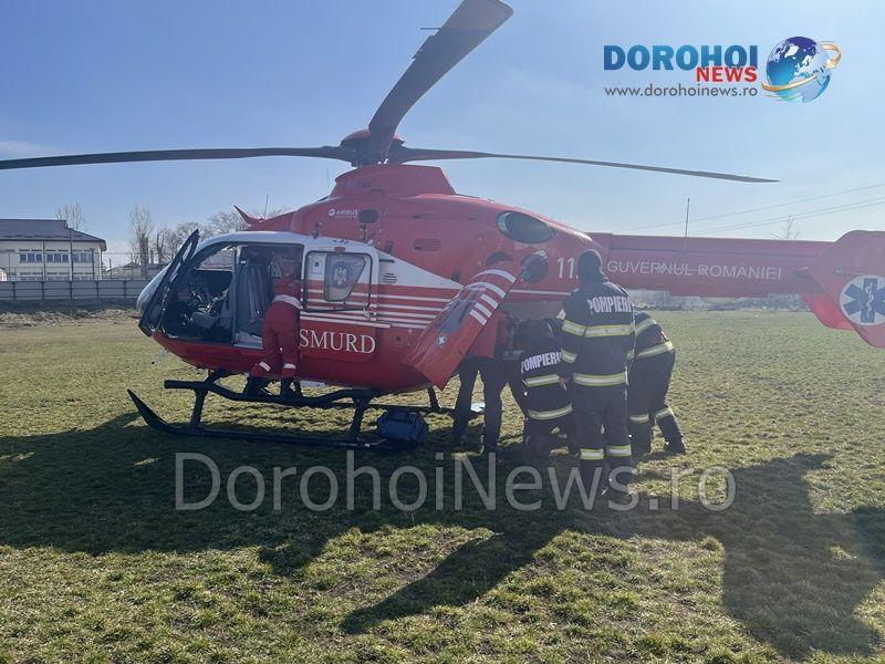 Elicopterul SMURD a fost solicitat duminică, 19 martie 2023, la Dorohoi, pentru a prelua un bărbat în vârstă de 73 de ani, din Darabani.