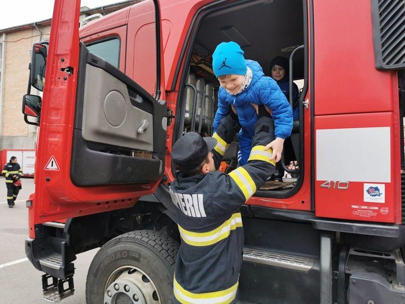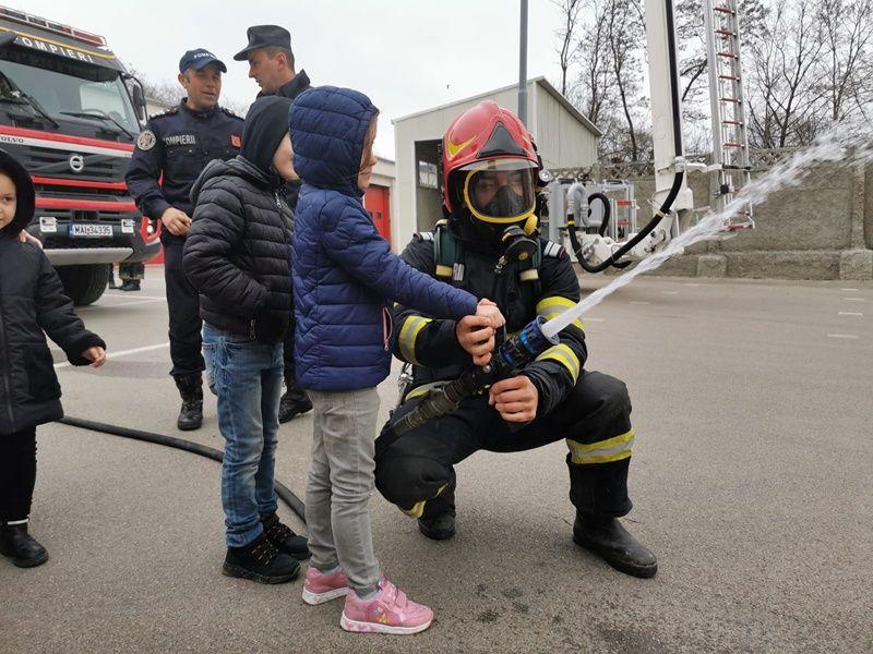 Vizibil emoţionaţi, copiii au îmbrăcat haina de pompier, au urcat în autospecialele de intervenţie și au folosit țeava de refulare. Cei mai îndrăzneți au aflat cum se protejează servanţii pompieri pe timpul incendiilor cu ajutorul aparatului de respirat cu aer comprimat şi a căştii de protecţie.