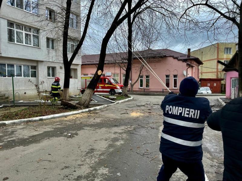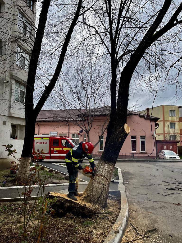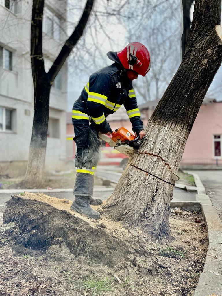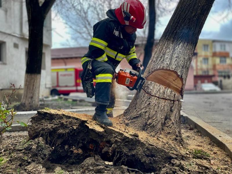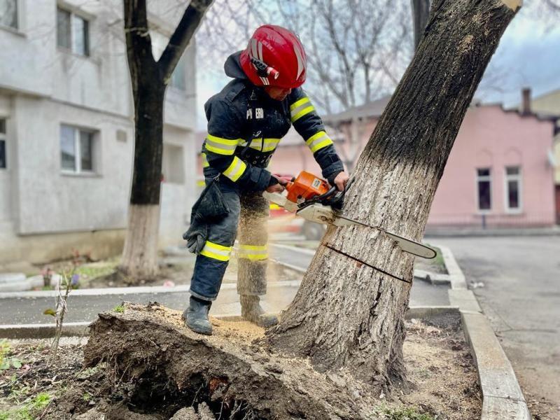 Un arbore, scos din rădăcini de vântul puternic, punea în pericol viața oamenilor care treceau pe strada Uzinei din municipiul Botoșani. În cădere, copacul ar fi putut avaria și mașinile parcate în zonă. Acesta a fost motivul pentru care, mai mulți locatari au chemat pompierii. Un echipaj din cadrul Detașamentului de Pompieri Botoșani, a intervenit cu o autospecială de stingere, dotată cu accesorii specifice pentru tăierea copacului și au înlăturat pericolul.