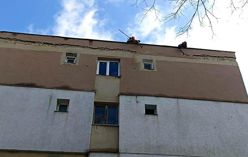 - pe strada Uzinei din municipiul Botoșani, unde mai multe bucăți de azbociment de pe un bloc au fost luate de vânt, iar altele erau desprinse și puteau să cadă peste mașini și trecători. La caz au intervenit pompierii din cadrul Detașamentului Botoșani;