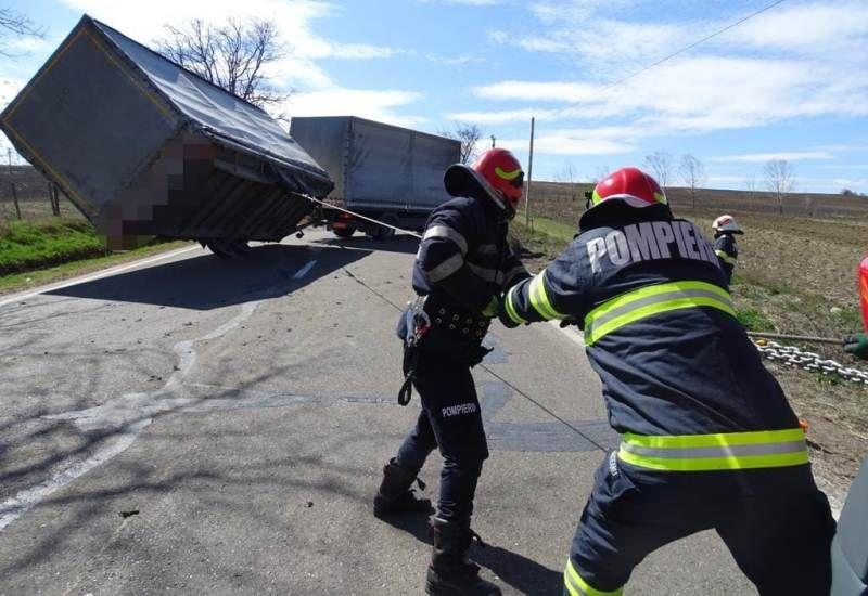 Un echipaj din cadrul Detașamentului de Pompieri Botoșani, cu autospeciala de descarcerare grea, a ajuns la fața locului, în cel mai scurt timp. Pompierii au intervenit cu accesoriile din dotare și au repus remorca pe roți. În aceste condiții, șoferul și-a putut continua cursa spre destinație, iar pe drum s-a reluat circulația.