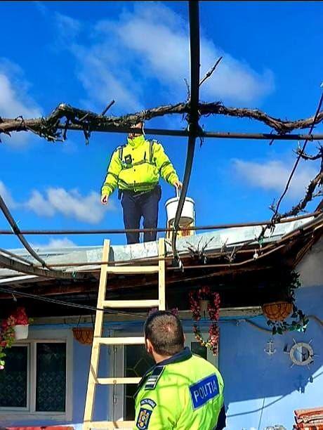 Primii care au ajuns la fața locului au fost doi polițiști din Dorohoi, Ionuț Niculăesei și Cristian Cărceanu, care s-au mobilizat imediat. Câteva găleți și apa „a început să curgă” peste focul care își făcea prezența pe lângă coșul casei.