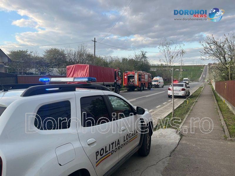 Apelul de urgență a fost efectuat joi, 27 aprilie 2023, în jurul orei 19. La fața locului s-au deplasat două autospeciale cu apă și spumă din cadrul Detașamentului de Pompieri Dorohoi, o ambulanță din cadrul SJA Botoșani, un echipaj din cadrul Poliției Dorohoi, un echipaj din cadrul Poliției Locale Dorohoi și o echipă operativă de la DelGaz Grid care a deconectat locuința de la energia electrică.