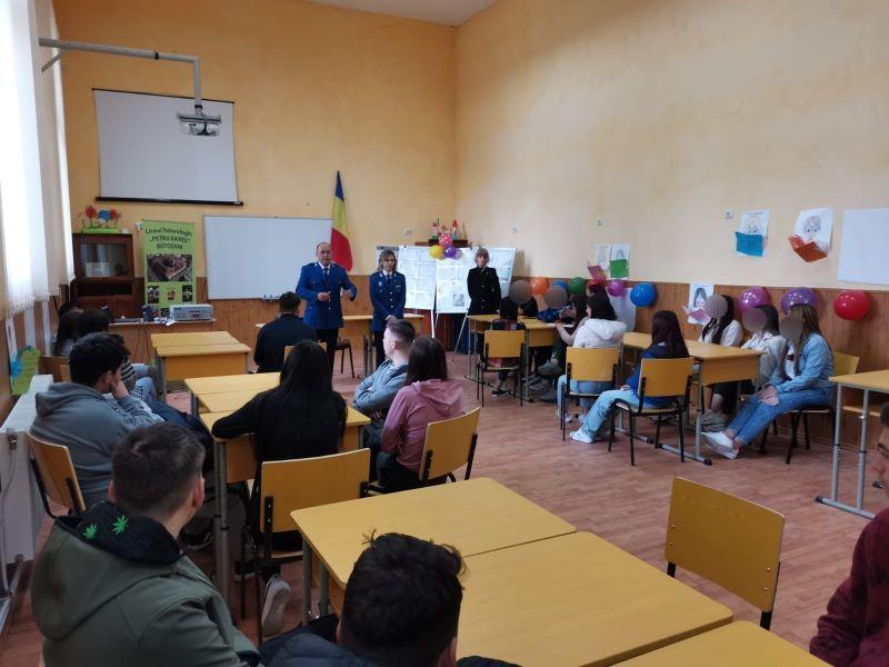 În această săptămână, jandarmii au desfășurat activități informativ-preventive la mai multe unități școlare, respectiv la Liceul „Regina Maria” Dorohoi, Liceul Tehnologic „Elie Radu” Botoșani, Liceul Tehnologic „Petru Rareș” Botoșani și Școala Gimnazială nr.2 Botoșani.