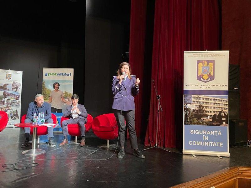 Săptămâna prevenirii criminalității a debutat cu un eveniment inedit organizat, astăzi, 22 mai a.c., la Casa de Cultură a Tineretului de către Inspectoratul de Poliție Județean Botoșani și Consiliul Județean Botoșani – Autoritatea Teritorială de Ordine Publică, în parteneriat cu Inspectoratul Școlar Județean Botoșani.