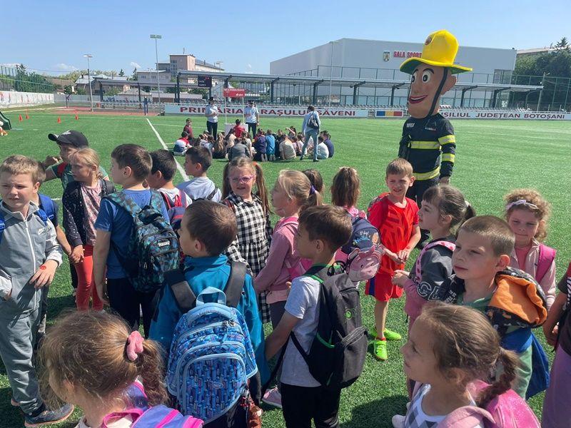 Pompierii botoșăneni s-au întâlnit, marți, 30 mai 2023, cu copiii din orașul Săveni, pentru a sărbători, împreună, Ziua Internațională a Copilului.