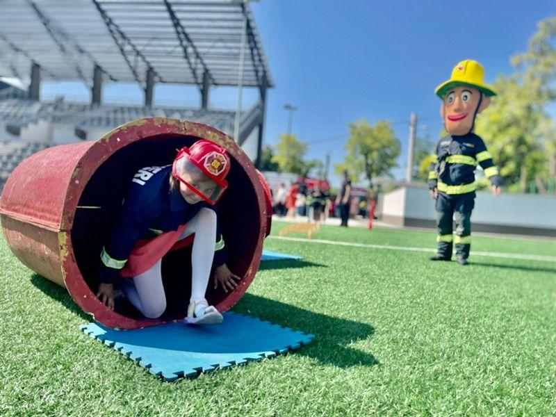 Nelipsite au fost și autospeciala de intervenție cu apă și spumă, autospeciala pirotehnică, dar și ambulanța SMURD, deoarece, este cunoscut faptul că cei mici sunt curioși să afle cum funcționează și la ce folosesc accesoriile. De departe, cel mai așteptat moment a fost parcurgerea traseului aplicativ, sub directa coordonare a celui mai renumit salvator, Pompierul Sam. Bucuria de a-și întâlni eroii s-a citit în ochii fiecărui copil.