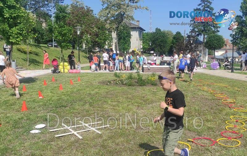 Copiii dorohoieni s-au bucurat miercuri, 31 mai 2023, de jocuri educative în aer liber. Activitatea s-a desfășurat în parcul din spatele Primăriei Municipiului Dorohoi, unde au fost amenajate trasee complexe pe care copiii trebuiau să le parcurgă pentru a câștiga.