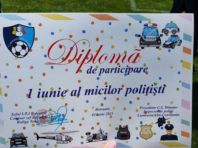 La finalul activităților, cei mici au primit diplome de "Mici polițiști" și surprize dulci oferite cu sprijinul Asociației Dinamo.