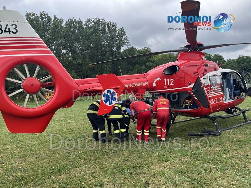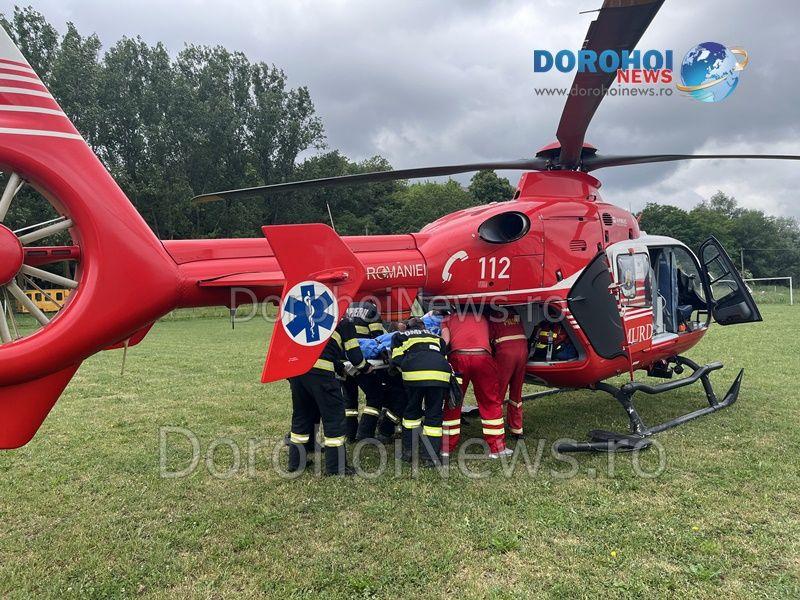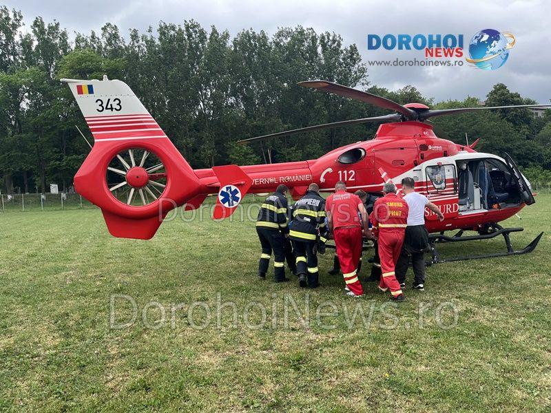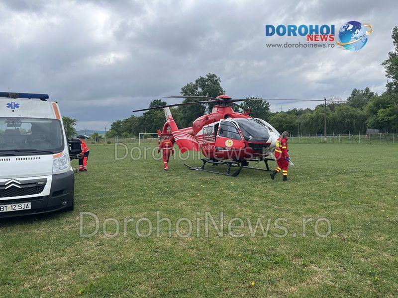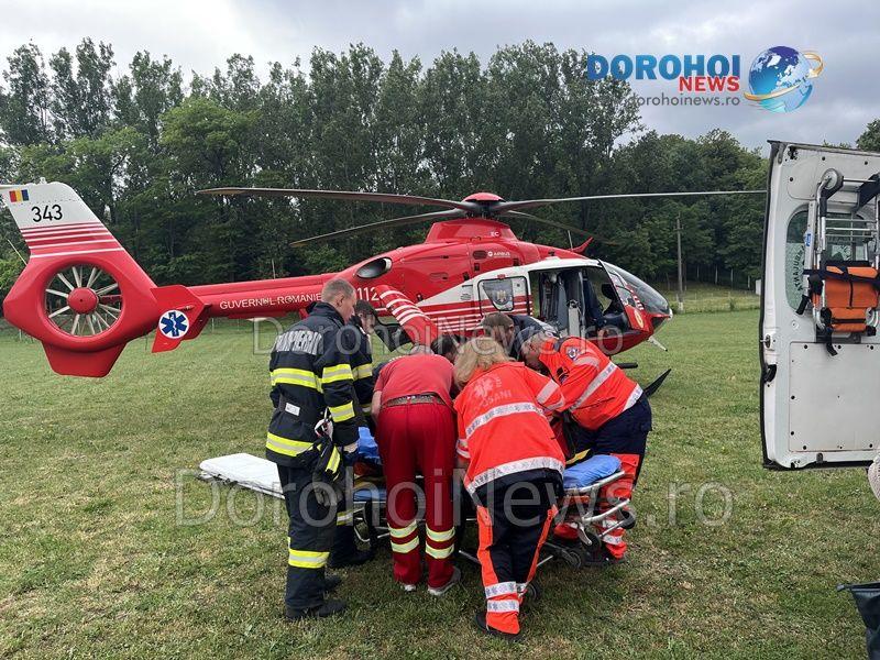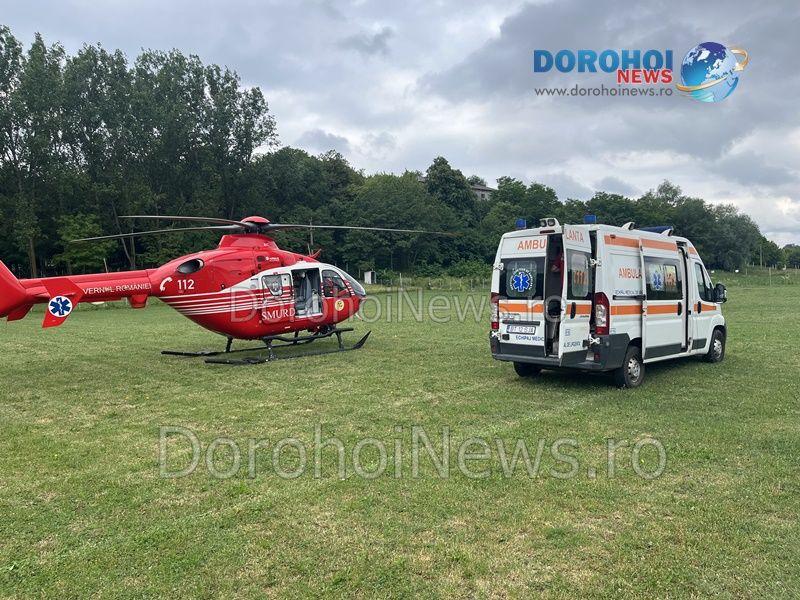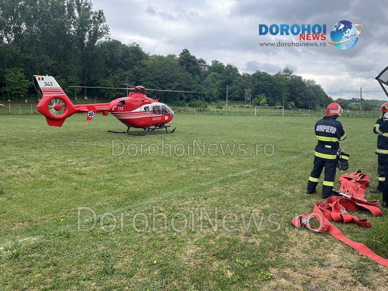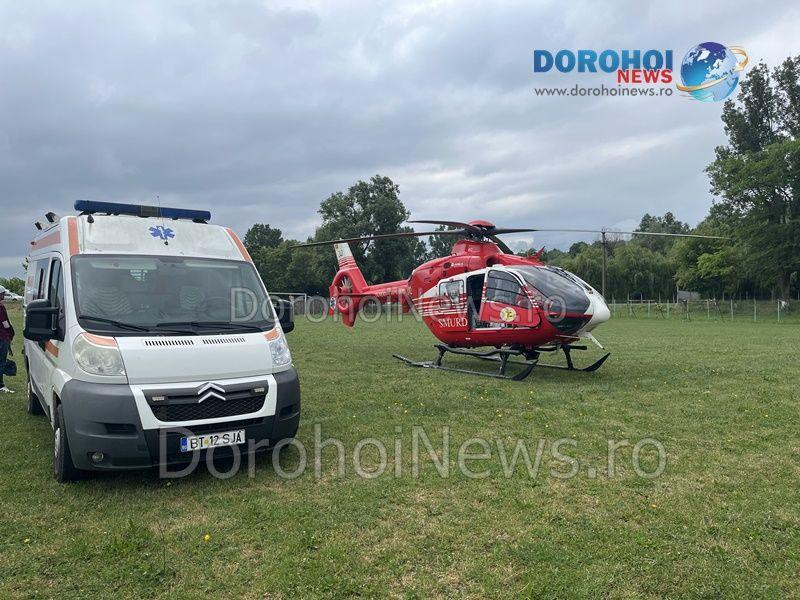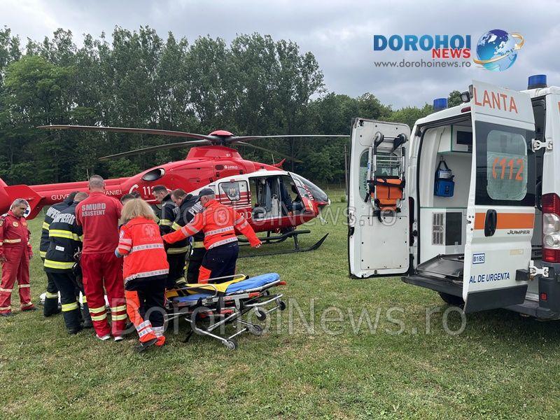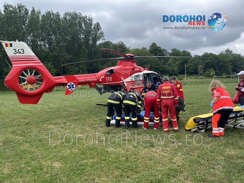 Femeia a acuzat dureri toracice posterioare foarte mari, fapt pentru care a solicitat ajutorul cadrelor medicale. Aceasta a fost preluată de o ambulanță și tranportată la Spitalul Municipal Dorohoi unde a fost diagnosticată cu infarct miocardic acut. Mecidii au solicitat elicopterul SMURD care să o transfere la o clinică de specialitate din Iași. Femeia este cunoscută cu probleme cardiace.