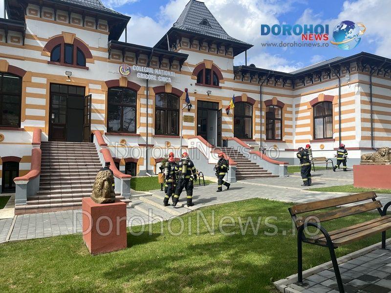 Zeci de efectivele din cadrul Detașamentului de Pompieri Dorohoi au fost miercuri, 14 iunie 2023, în alertă după ce un apel la 112 a anunțat că s-a produs un cutremu, urmat de un incendiu la Colegiul Național „Grigore Ghica” Dorohoi, corpul II (n.r. situat pe strada A.I. Cuza).