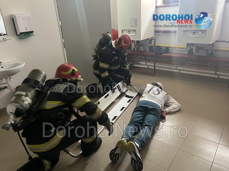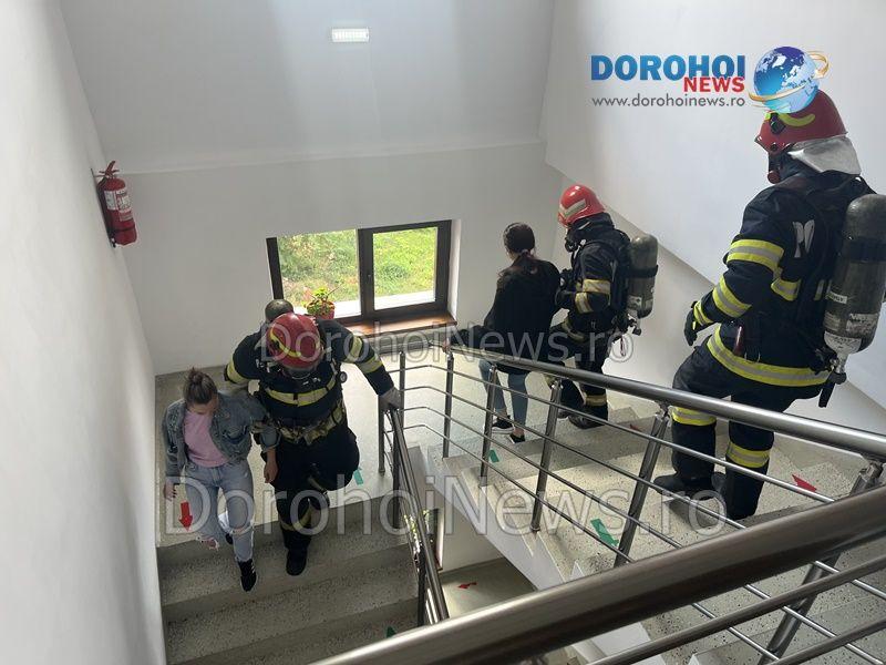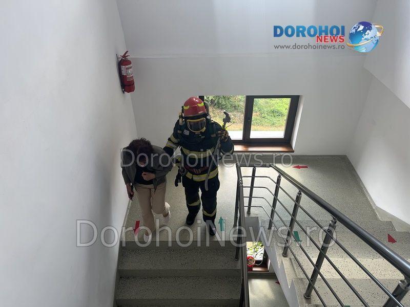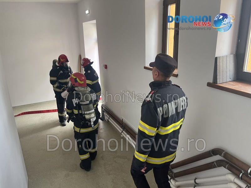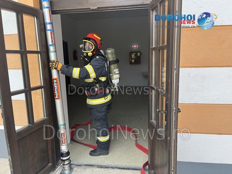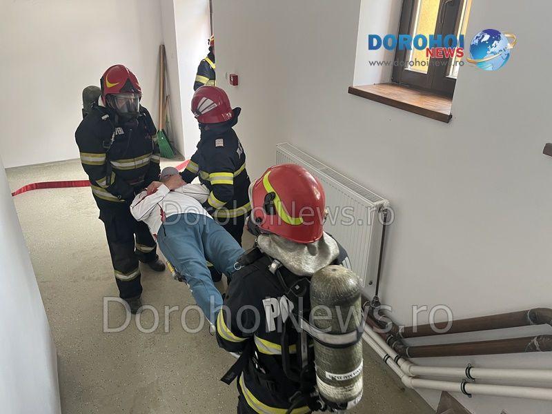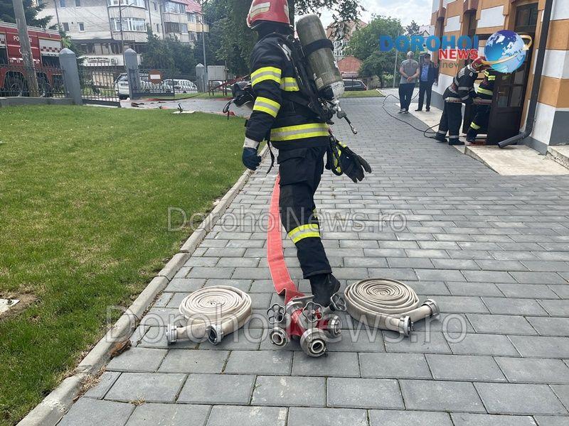 În urma apelului primit, Detașamentul de Pompieri Dorohoi a fost alarmat pentru a interveni. A fost vorba de un cutremur urmat de un incendiu cu degajări mari de fum, fiind prinse în interior cinci persoane. Pompierii militari au intervenit prompt și au reușit să se coordoneze cât mai bine pentru a simula cât mai bine o situație reală.