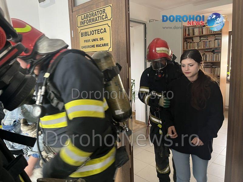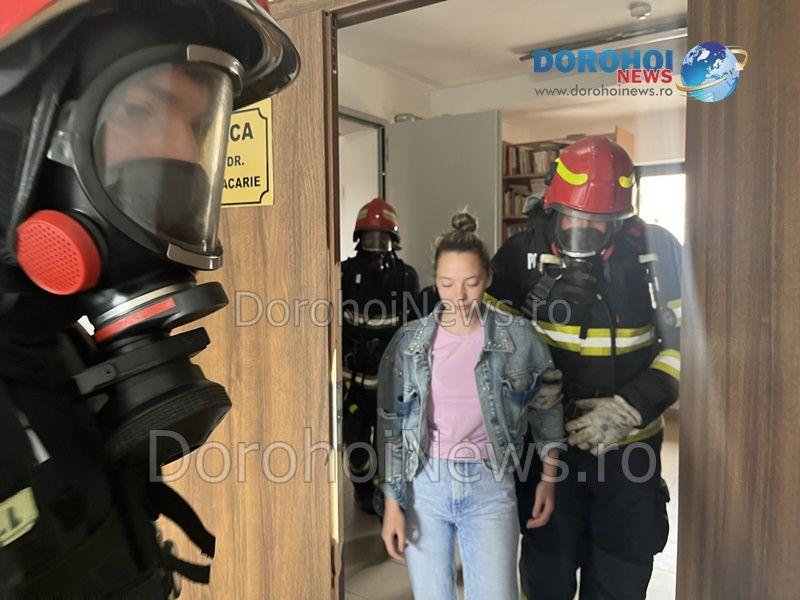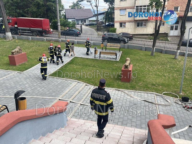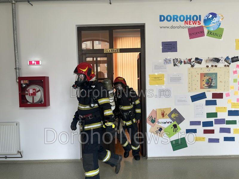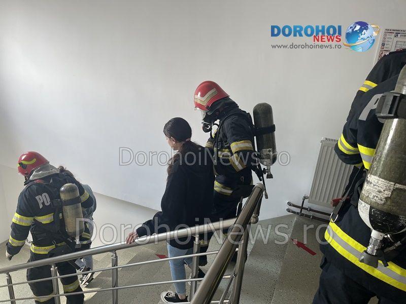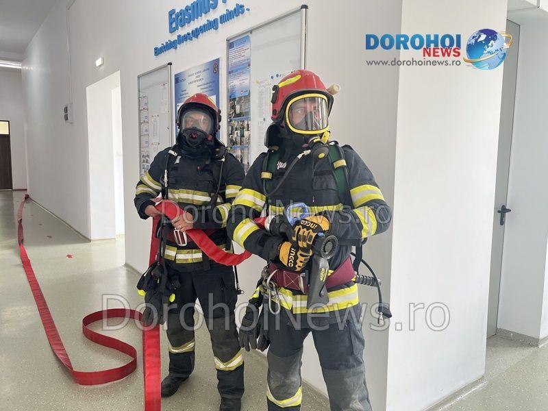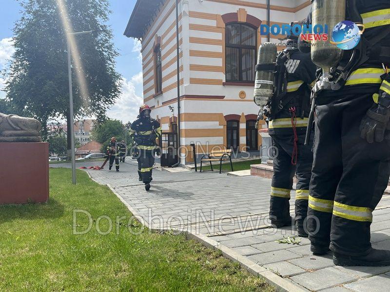 În urma apelului primit, Detașamentul de Pompieri Dorohoi a fost alarmat pentru a interveni. A fost vorba de un cutremur urmat de un incendiu cu degajări mari de fum, fiind prinse în interior cinci persoane. Pompierii militari au intervenit prompt și au reușit să se coordoneze cât mai bine pentru a simula cât mai bine o situație reală.