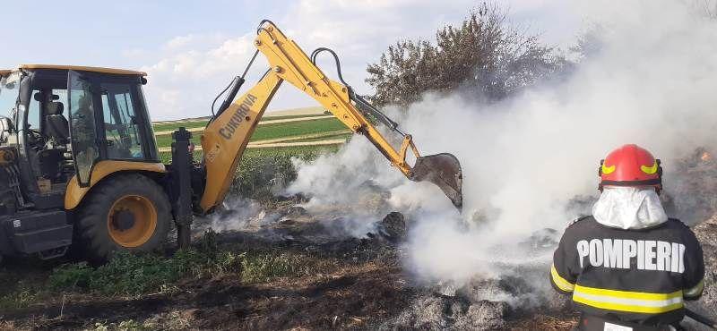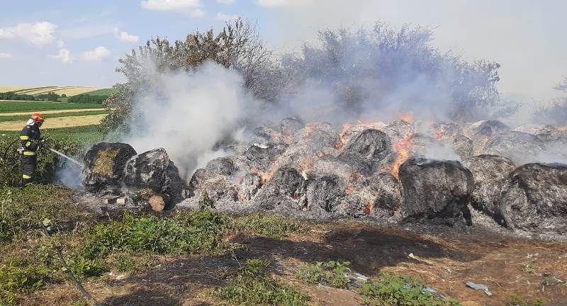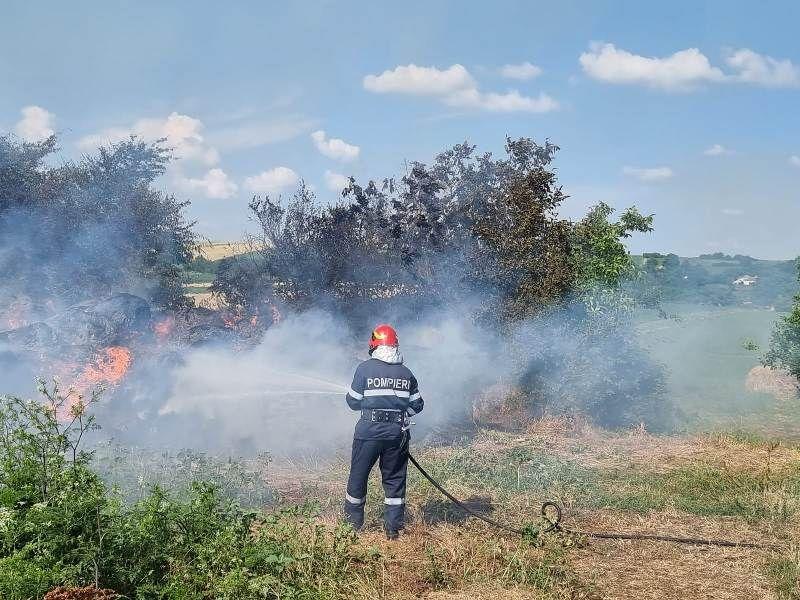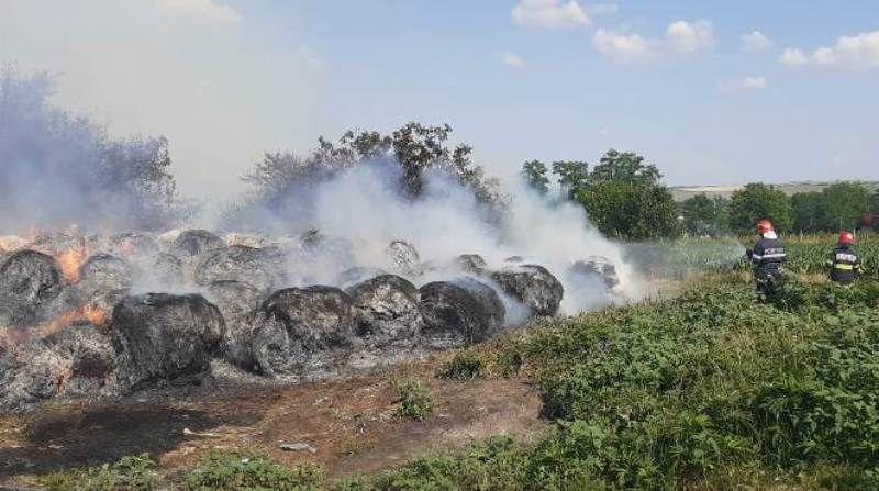 Incendiu violent, marți după-amiază, pe raza localității Iurești. Flăcările au cuprins peste 200 de baloți de paie.