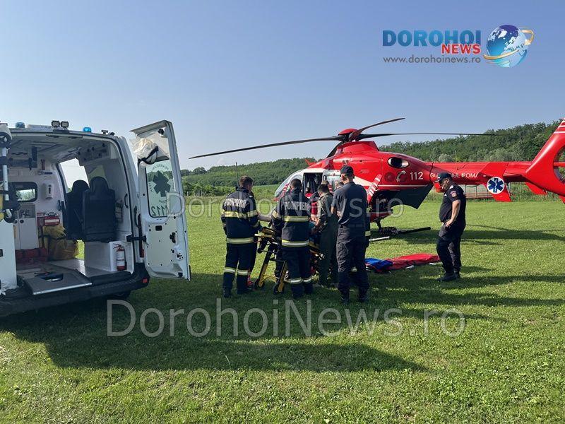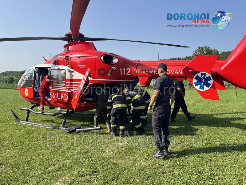 Elicopterul SMURD a fost solicitat vineri, 23 iunie 2023, pentru a prelua un bărbat, în vârstă de 53 de ani, din Dorohoi.