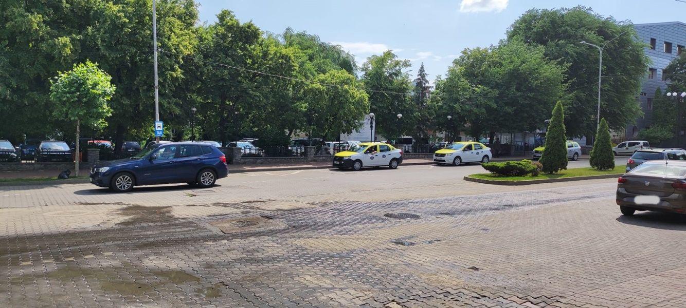 Urmele de fecale sunt răspândite pe carosabil din fața Spitalului Municipal Dorohoi până la intrarea în parcul Cholet.