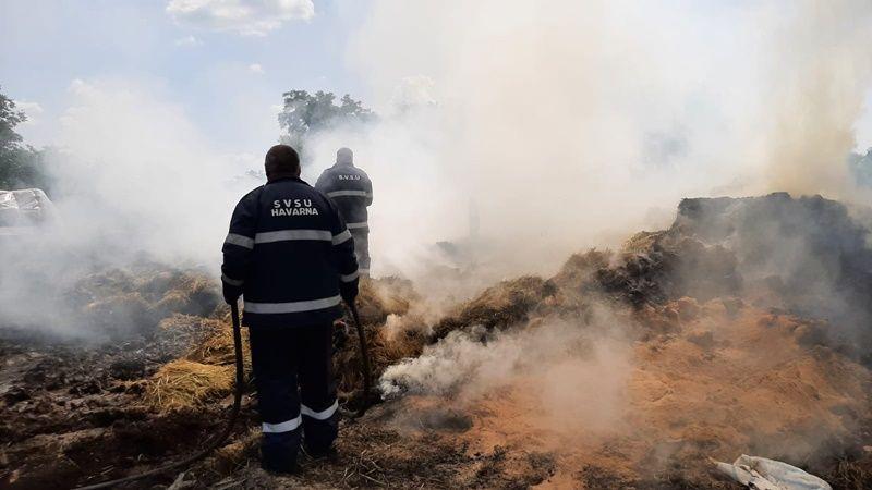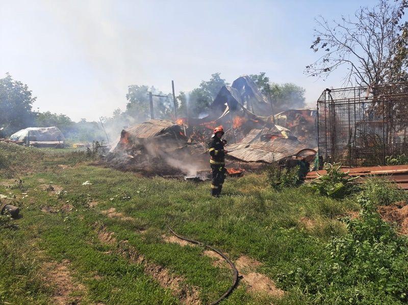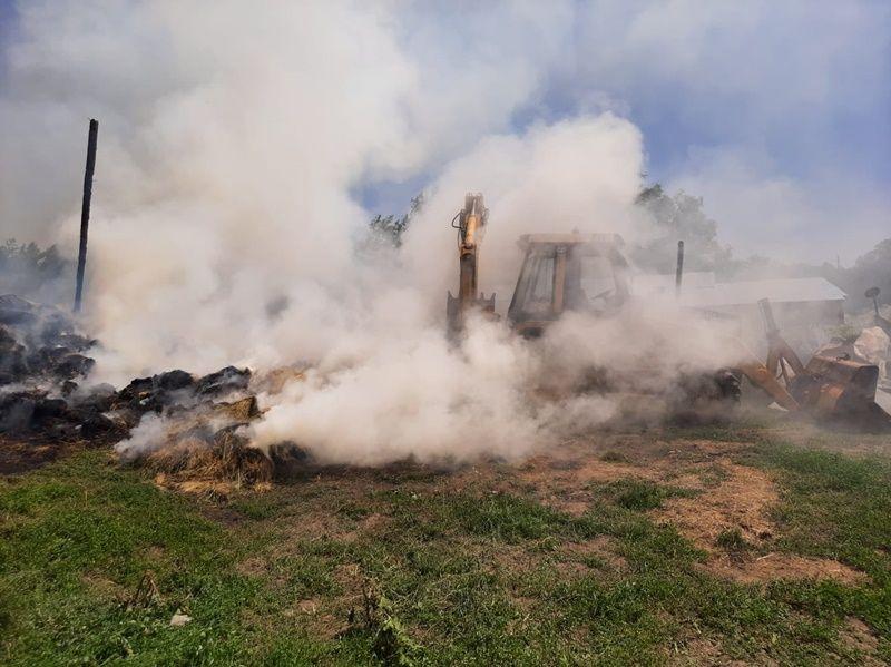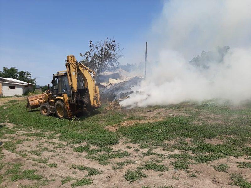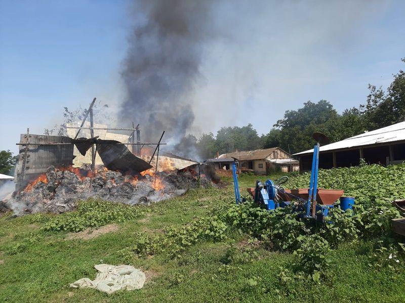 Aproximativ 80 de tone de furaje au ars, sâmbătă, 1 iulie 2023, într-o gospodărie din localitatea Plevna, din cauza umidității ridicate, încălzire și autoaprindere.